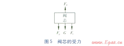 壓力調(diào)節(jié)器閥芯的受力見圖5。當比例線圈未施加電流時,線圈產(chǎn)生的電磁力Fd,為0,在閥芯重力G、彈簧作用力Ft、燃氣對膜片的作用力Fp共同作用下閥芯處于關(guān)閉狀態(tài)。