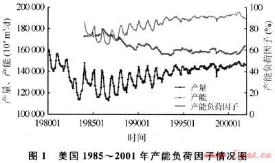 美國的產(chǎn)能負(fù)荷因子直接受氣價(jià)的影響,高氣價(jià)直接刺激新鉆井和完井工藝的增加,產(chǎn)能也隨之增加,產(chǎn)能負(fù)荷因子降低。而產(chǎn)能負(fù)荷因子反過來又影響價(jià)格和鉆井,如果產(chǎn)能負(fù)荷因子超過90%,就會引起儲氣量減少、價(jià)格上漲等。當(dāng)天然氣產(chǎn)能負(fù)荷因子低于90%時(shí),天然氣井口平均價(jià)格都在0.1美元/m3以下。天然氣價(jià)格的低迷導(dǎo)致鉆井和完井?dāng)?shù)量的減少,產(chǎn)能隨之降低,產(chǎn)能負(fù)荷因子上升。如1998~1999年低油氣價(jià)格導(dǎo)致天然氣產(chǎn)能負(fù)荷因子增加到90%~92%。