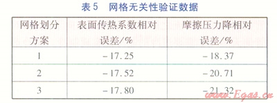 由表5可知,三種網(wǎng)格劃分方案對數(shù)值求解結果已無明顯影響,綜合考慮網(wǎng)格數(shù)量與表面?zhèn)鳠嵯禂?shù)及摩擦壓力降相對誤差后,將網(wǎng)格劃分方案2作為最終的網(wǎng)格劃分方案。