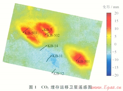 CO2捕集與埋存技術(shù)(Carbon Dioxide Capture and Storage,簡(jiǎn)稱(chēng)CCS)是實(shí)現(xiàn)CO2減排的首選技術(shù)之一[1],但成本高昂[1-2]。真正意義上獲得全球公認(rèn)的3例大型的工業(yè)CCS項(xiàng)目是:①將CO2埋存在油氣層下部鹽水層的Sleipner-Snjhvit項(xiàng)目;②與CO2-EOR相結(jié)合的Weybrn項(xiàng)目;③在含CO2的低豐度天然氣層中埋存CO2的In Salah項(xiàng)目[2-3]。它們均屬于CO2地質(zhì)埋存同時(shí)結(jié)合石油天然氣開(kāi)發(fā)的項(xiàng)目,其目的是通過(guò)規(guī)?;C合利用來(lái)降低CO2地質(zhì)埋存的成本。其中In Salah項(xiàng)目在2009年成為CSLF(碳收集領(lǐng)導(dǎo)入論壇)贊助的全球30個(gè)CCS項(xiàng)目之一,是CSLF認(rèn)證的全球3個(gè)CO2埋存檢測(cè)示范點(diǎn)之一。In Salah氣田儲(chǔ)量2149×108m3,產(chǎn)干氣和少量輕質(zhì)油,部分氣藏產(chǎn)CO2,CO2含量5%~l0%。CO2埋存層位是Krechba氣層,為石炭系低滲透砂巖邊水、干氣藏,且富含CO2。氣層厚度20m,孔隙度10%~18%,平均滲透率10mD,CO2埋藏深度為地下1850~1950m。為了在采氣的同時(shí)實(shí)施CO2埋存,項(xiàng)目總投資27億美元。2004年—2011年,氣田進(jìn)行了大規(guī)模天然氣開(kāi)采和CO2地質(zhì)埋存,回注CO2速度約100×104t/a。圖1給出2009年In Salah氣田Krechba氣層CO2埋存的運(yùn)移衛(wèi)星遙感圖顯示,經(jīng)過(guò)5年大劑量的CO2注入后,Krechba氣層的CO2擴(kuò)散仍比較均勻,在生產(chǎn)井未見(jiàn)CO2突破。結(jié)合已經(jīng)公開(kāi)的成果可知,該項(xiàng)目到目前埋存是成功的[2-7]。