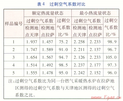 ②燃氣采暖熱水爐的熱效率:對于同一臺燃氣采暖熱水爐在拉薩地區(qū)過剩空氣系數(shù)要小于海平面地區(qū),而過??諝庀禂?shù)越大,過剩的煙氣帶走的熱量越多,熱效率越低,因此拉薩地區(qū)測得的熱效率要高于海平面地區(qū)。
