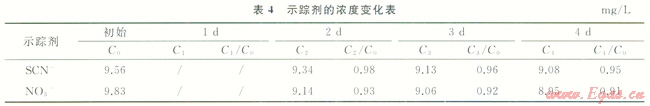 根據(jù)表4結(jié)果表明,煤粉對SCN-和NO3-雖具有一定的吸附作用,但每天Ci/C0的值遞減較慢,4d后Ci/C0均大于0.8,滿足示蹤劑靜態(tài)吸附實(shí)驗(yàn)要求。