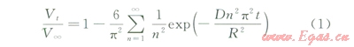 式中Vt為t時間內(nèi)的累計解吸量;V¥為總解吸量;D為擴散系數(shù);R為煤粒半徑。