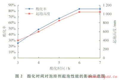 2.1.3酯化時(shí)間對泡排劑起泡性能的影響