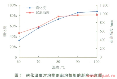 2.1.5磺化反應(yīng)溫度對起泡性能的影響