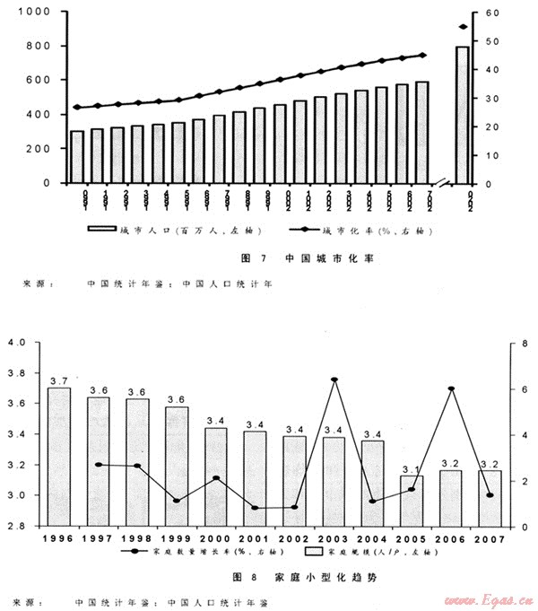 隨著我國城市化進程不斷加快(見圖7)和城市家庭小型化(見圖8)趨勢,城市用氣人口和人均燃氣消費量快速增加(特別是二線城市的城市化和工業(yè)化)。目前城市平均氣化率程度僅為30%,市場遠未飽和。