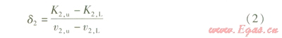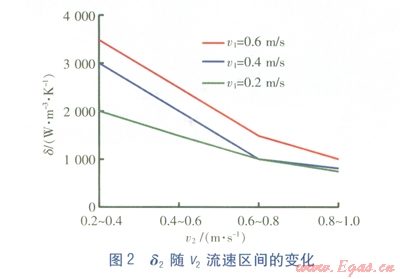 在v1一定的條件下,總換熱系數(shù)絕對變化率d2的計算式為: