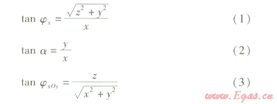 設(shè)管臂上點(diǎn)P的坐標(biāo)為(x,y,z),則有:
