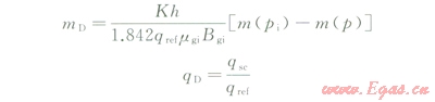 氣體具有強可壓縮性,其黏度(mg)、偏差因子(Zg)、體積系數(shù)(Bg)等都是關(guān)于壓力的強非線性函數(shù),如果直接對氣體滲流控制方程中的擴散系數(shù)進行強行近似必然會引起較大的誤差。使用擬時間函數(shù)(tg)能夠?qū)怏w滲流問題等效轉(zhuǎn)化為液體滲流問題,同時改進了“強行近似擴散系數(shù)(1/jmgcg)為常數(shù)”的假設(shè)條件,結(jié)果必然使得理論描述更接近于礦場實際情況,也方便液體研究領(lǐng)域內(nèi)成果的參考和借鑒。其中,擬時間定義為:
