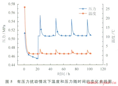 4)采用與上述過程相同的方法,改變C3H8水合物生成過程中的氣體注入方式,進(jìn)行壓力擾動(dòng)條件下C3H8水合物的生成實(shí)驗(yàn)。