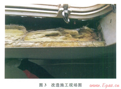 海上固定平臺長期受潮濕、日照、腐蝕等因素影響[13],使平臺生活樓房間墻壁原有隔聲效果降低。為更好的阻礙空氣噪聲及振動噪聲的傳播,針對房間的墻壁提出改造處理。生活樓房間的吸隔聲內(nèi)墻壁如圖1所示,墻壁的隔聲效果不佳。對于該類房間的墻壁,選用符合中國船級社規(guī)定的吸隔聲材料,如圖2所示。對于噪聲超標(biāo)代表性房間進行現(xiàn)場施工改造,改造現(xiàn)場圖如圖3所示。