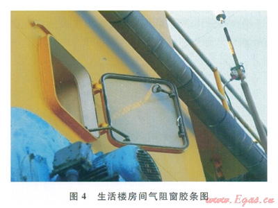 平臺生活樓房間布有400mm×560mm規(guī)格的氣阻型鋼質(zhì)窗,房間原有氣阻型窗玻璃膠條老化開裂,漏聲嚴(yán)重,其現(xiàn)場如圖4所示。對于此類狀況,可將房間舷窗用耐候隔聲膠條替換原有老化膠條。密封膠條的選用應(yīng)符合現(xiàn)場門窗的實際要求,具有阻燃、防火能力,如圖5所示。