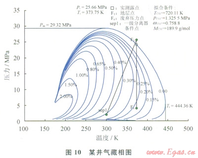 1)凝析氣藏相圖。根據(jù)凝析氣藏不同開發(fā)階段需要進(jìn)行測試,但該數(shù)據(jù)只能反映某時段凝析氣藏流體的整體情況,而單井流體組成具有特殊性(各井產(chǎn)出流體氣油比、含水率與整個氣藏不一定相同)和時效性(各井隨開采時間的增加流體組成不同),采用凝析氣藏相圖與單井實際情況存在較大差異。