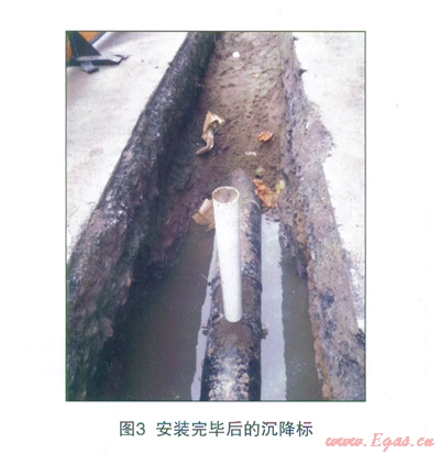 沉降標在管道施工的同時進行安裝,有專業(yè)的安裝施工隊進行,保證監(jiān)測的準確性。沉降標的安裝見圖3所示。