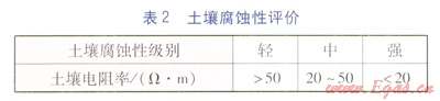 本次土壤腐蝕性檢測(cè),利用ZC-8接地電阻測(cè)量?jī)x測(cè)試土壤的電阻率。管道周?chē)寥离娮杪试?span lang="EN-US">20.0~75.2W·m范圍。按照CJJ 95—2013《城鎮(zhèn)燃?xì)饴竦劁撡|(zhì)管道腐蝕控制技術(shù)規(guī)程》中土壤電阻率腐蝕性評(píng)價(jià)指標(biāo)的劃分(見(jiàn)表2),埋地燃?xì)怃摴苤車(chē)寥栏g性在輕、中級(jí)別。