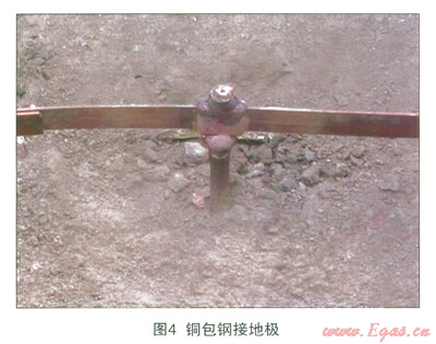 根據GB/T 50235—2010《工業(yè)金屬管道工程施工及驗收規(guī)范》中對防靜電和防雷電的要求,對于露空的閥門、閘井中的閥門應該進行接地處理。在接地時,為了有效地降低與土壤的接觸電阻和接地材料的自身腐蝕,往往會使用銅包鋼或者銅網等惰性材料接地方式,如圖4所示。