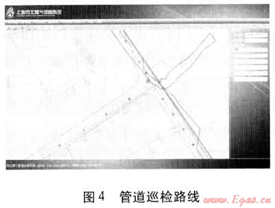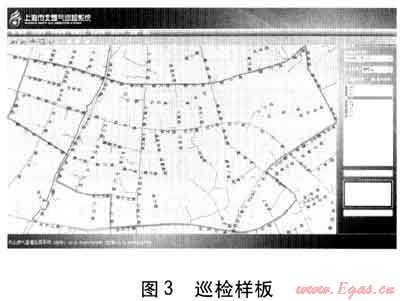 巡檢前,管理人員選擇要巡檢的樣板和巡檢的日期,制定巡檢任務(wù)。巡檢人員只需根據(jù)當日巡檢任務(wù),選擇要巡檢的樣板,即可了解當天所要巡檢的地區(qū)范圍及其所包含的管道。圖3中所示區(qū)域是當天的巡檢樣板。