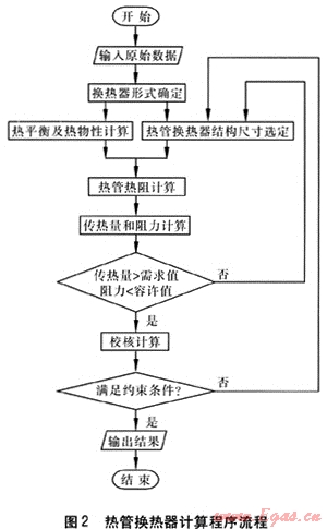 熱管換熱器的設(shè)計(jì)計(jì)算過(guò)程具有一定的復(fù)雜性,往往要經(jīng)過(guò)多次試算,用計(jì)算機(jī)輔助設(shè)計(jì)可以大大提高計(jì)算精度和速度,有利于縮短產(chǎn)品研制時(shí)間和降低研制成本,具有十分明顯的應(yīng)用價(jià)值。本文基于熱管換熱器的等效連續(xù)間壁式計(jì)算模型及計(jì)算方法,用VB語(yǔ)言編制了熱管換熱器的通用設(shè)計(jì)計(jì)算程序,計(jì)算程序流程見圖2。