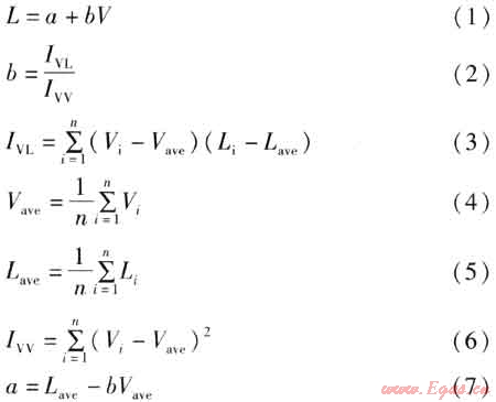 從20世紀末開始,我國天然氣發(fā)展迅速,不僅建設(shè)了數(shù)條輸氣管道,配氣管道也得到了發(fā)展,統(tǒng)計資料也日趨完善。根據(jù)10余年統(tǒng)計資料,采用回歸分析法,建立配氣管道長度與年燃氣消費總量之間的關(guān)系成為可能。1996—2008年我國配氣管道長度與年燃氣消費總量的統(tǒng)計數(shù)據(jù)見表1[1],V為各年燃氣消費總量,單位為m3/a,L為各年配氣管道的長度,單位為km。由表1數(shù)據(jù)建立配氣管道長度與年燃氣消費總量的關(guān)系曲線,見圖1。由圖1可知,配氣管道長度與年燃氣消費總量基本成線性關(guān)系,因此可采用回歸分析法建立二者的函數(shù)關(guān)系。