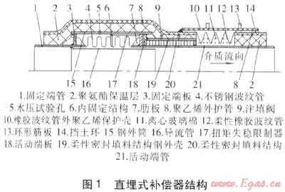 直埋式補(bǔ)償器的結(jié)構(gòu)見圖1。