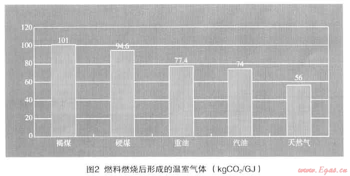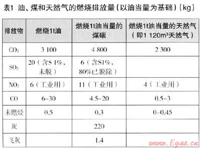 ② 表2中,日本介紹了各種燃料考慮燃料效率后的排放量。美國資料也認為天然氣比其他燃料可少排放45%的C02,如采用高效燃燒技術(shù)甚至可能減少70%的C02。但效率應采取不同使用設備的平均綜合效率,這又是一個重要的研究課題。