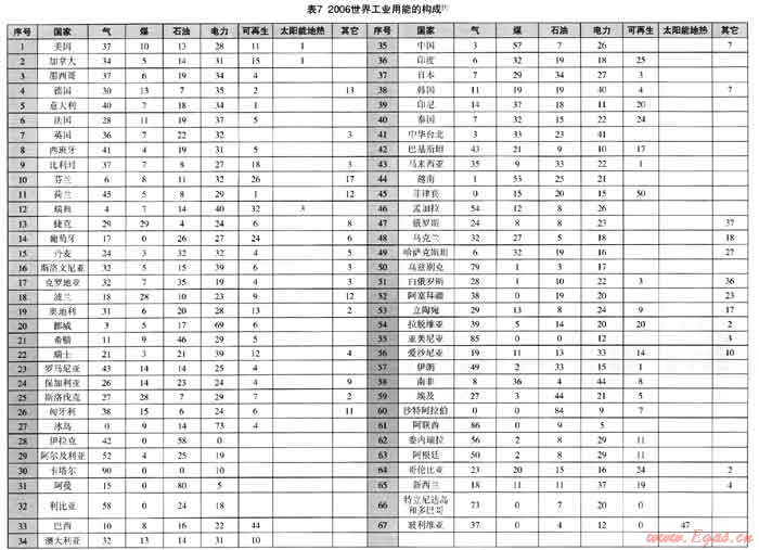 (1) 世界一次能源的消費構(gòu)成、世界工業(yè)用能構(gòu)成和世界發(fā)電用能構(gòu)成可見表3、表4、表5