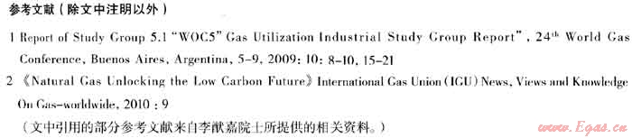 (5) 本文所引用的資料均是本世紀以來值得研究的數(shù)據(jù),從中可看出世界各國對本世紀能源構(gòu)成的共同發(fā)展方向。在化石燃料中,由于天然氣的碳/氫比較小,是唯一能滿足節(jié)能、減排要求的燃料,常稱為環(huán)境友好燃料。在世界各國的能源構(gòu)成中,我國是所占比重最低的國家之一,改革開放以來的變化也很小。增加1000億m3的天然氣,相當于1.2億t的標準煤,按表2可算出燃料效率提高后的節(jié)能量和C02減排量。當今世界年消耗天然氣約2.48億m3,相當近29億t標煤,在世界能源、減排中有舉足輕重的作用,到2030年估計全球天然氣消費料將達4.5億m3-5億m3。國際研究表明,加上可再生能源,新能源和其它減排措施后,全球C02的濃度可能降低到1990年水平的要求。本世界以來天然氣已形成了較大的國際市場,發(fā)展天然氣已成為各國應對氣候變暖的首選方案。我國在國家“十二五”規(guī)劃綱要中已有反映。