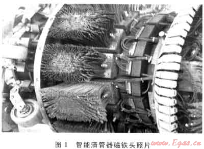 近年來(lái),長(zhǎng)輸天然氣管道加強(qiáng)了在役檢測(cè),廣泛采用了數(shù)字化的智能清管器,與傳統(tǒng)的“投球”清管后再進(jìn)行無(wú)損檢測(cè)作業(yè)相比,使用智能清管器具有開挖面積小、融清潔與診斷為一體的優(yōu)勢(shì),但在實(shí)施智能清管作業(yè)過(guò)程中,受清管器發(fā)射的磁場(chǎng)波影響,管道帶磁情況較為嚴(yán)重。智能清管器磁鐵頭(其示意圖如圖1所示)在清管作業(yè)過(guò)程中,由鐵毛刷下端的磁鐵塊不斷向管內(nèi)壁發(fā)出磁場(chǎng)波,導(dǎo)致管道帶磁。北方某公稱直徑1016mm的天然氣輸氣管道受此影響,導(dǎo)致?lián)Q管碰口施工中無(wú)法正常進(jìn)行根焊作業(yè)。