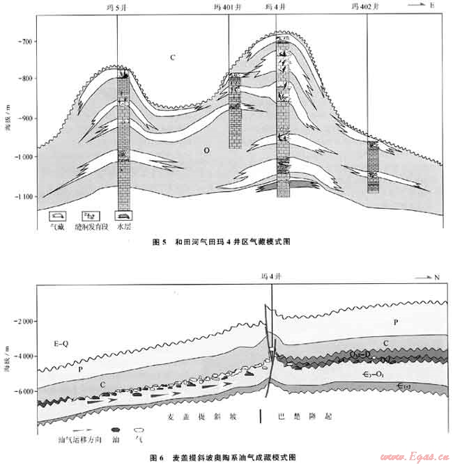 2) 和田河氣田的氣藏模式分析表明非構造油氣藏是該區(qū)油氣勘探的主要對象,低部位的麥蓋提斜坡奧陶系風化殼巖溶儲層發(fā)育,是尋找大面積縫洞型油氣藏勘探的有利方向。