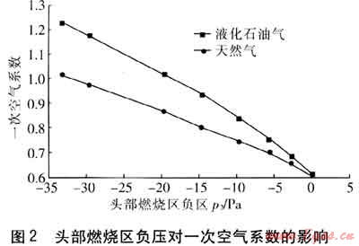 2 燃燒區(qū)負(fù)壓對大氣式燃燒器的影響