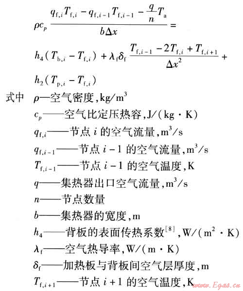 對于吸熱板與背板之間的流體,節(jié)點(diǎn)i的能量平衡方程為: