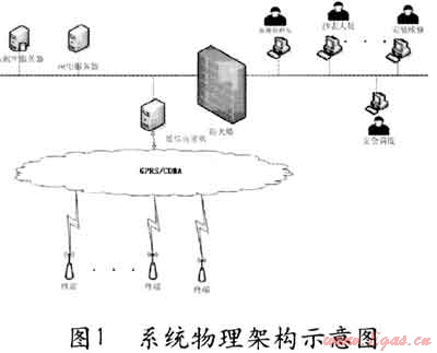 根據(jù)公司對網(wǎng)絡(luò)安全的特殊要求,采用GPRS/CDMA專線,實(shí)現(xiàn)采集終端和服務(wù)器平臺之間采用端到端加密,避免信息在整個傳輸過程中出現(xiàn)泄漏的可能,兩者通過防火墻進(jìn)行隔離,并在防火墻上進(jìn)行IP地址和端口過濾。