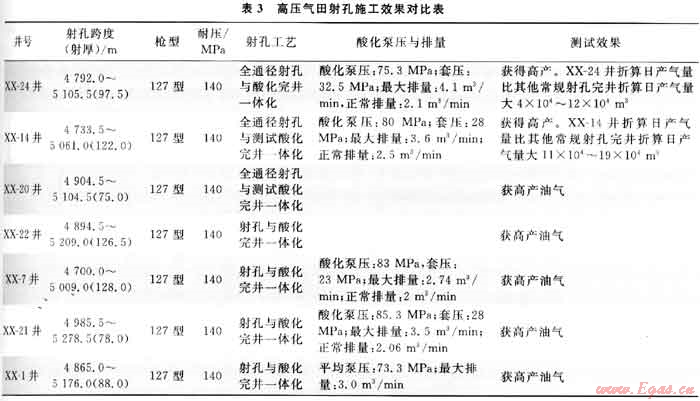 根據(jù)表3數(shù)據(jù),射孔后進(jìn)行酸化前后作業(yè)效果比較,結(jié)果表明XX-24井等全通徑射孔作業(yè)效果均優(yōu)于常規(guī)射孔。流量測(cè)試結(jié)果也一樣,同樣油嘴測(cè)試,全通徑射孔作業(yè)油氣產(chǎn)量高于常規(guī)射孔作業(yè)。