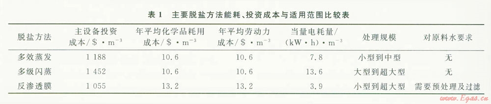 2 脫鹽技術(shù)的比較及優(yōu)選