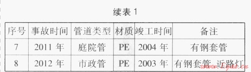 深圳地區(qū)2000年開始將PE管道應(yīng)用于埋地燃?xì)庵袎汗艿?。從運(yùn)行情況來(lái)看,PE管道確實(shí)較好地解決了傳統(tǒng)金屬管道易腐蝕穿孔和接頭易泄漏等運(yùn)行維護(hù)的難題,顯著提高了燃?xì)廨斔偷目煽啃裕蟠蠼档土斯艿赖倪\(yùn)行維護(hù)費(fèi)用。但在近年運(yùn)行過(guò)程中,曾出現(xiàn)多起PE燃?xì)夤艿朗馨紫佒g而造成管道破壞泄漏的問(wèn)題。