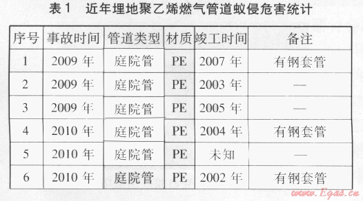 關(guān)鍵詞: 燃?xì)饩垡蚁┕艿溃?nbsp;白蟻; 蛀蝕;蟻侵