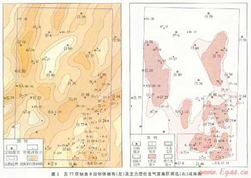 根據(jù)以上原則,確定蘇77區(qū)塊Ⅰ+Ⅱ類(lèi)富集區(qū)劃分依據(jù)如下。