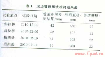 現(xiàn)場管道積液檢測結(jié)果如表l所示。