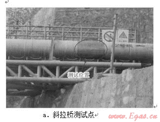 在中國石化中原油田分公司普光氣田公司(以下簡稱普光氣田)的協(xié)助下,根據(jù)測試位置的要求,最終選取了斜拉橋和桁架處作為管道積液測試位置(圖5)。