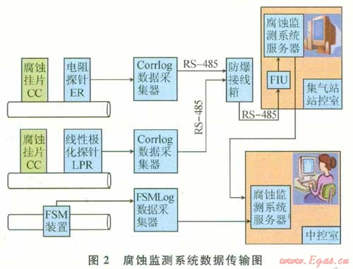 3 普光氣田地面集輸腐蝕監(jiān)測系統(tǒng)的構(gòu)成及數(shù)據(jù)傳輸流向