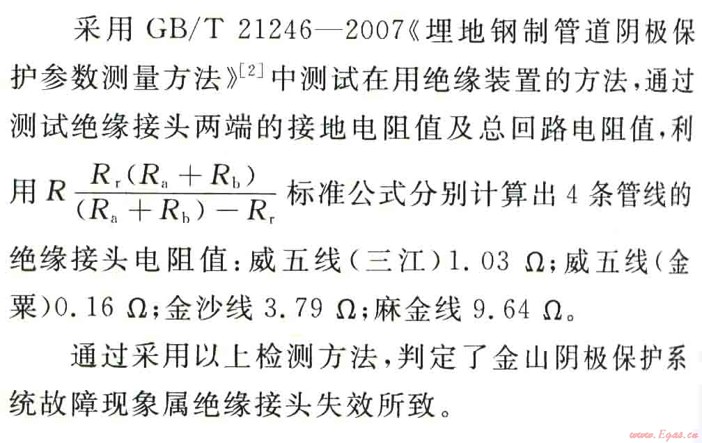 通過采用以上檢測方法,判定了金山陰極保護系統(tǒng)故障現(xiàn)象屬絕緣接頭失效所致。