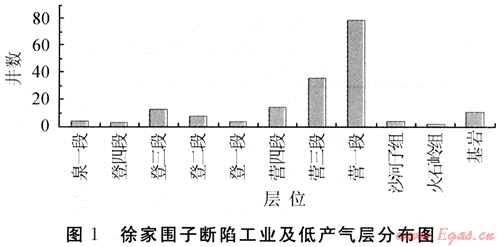 由表4中可以看出,徐家圍子斷陷營一段頂部蓋層厚度小,被斷裂破壞程度高,均為完全破壞,不利于天然氣聚集與保存。但由于該套蓋層排替壓力高(排替壓力平均可以超過9MPa),從微觀封閉能力上封閉天然氣是沒有問題的[14]。由圖1中可以看出,該套蓋層之下聚集了該斷陷最多的天然氣,這主要是由于該套蓋層具較強的微觀封閉能力,但由于該套蓋層被斷裂多處破壞,橫向分布連續(xù)性差,造成天然氣平面富集不集中,沿斷裂帶呈分散分布狀態(tài)(圖2)。
