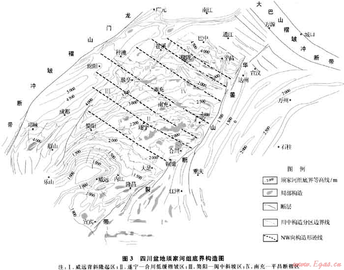 2 川中地區(qū)須家河組構(gòu)造分區(qū)