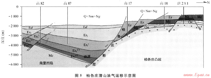 5) 下生上儲、新生古儲、油氣在構(gòu)造高部聚集成藏,構(gòu)造高部位是本區(qū)主要的油氣聚集帶。從以往的油氣勘探成果圖可以看出,南堡凹陷周邊地區(qū)油氣在構(gòu)造高部聚集明顯,不僅沿西南莊斷層、柏各莊斷層兩側(cè)高部位就近聚集,而且沿不整合面或輸導儲層向構(gòu)造高部位聚集。