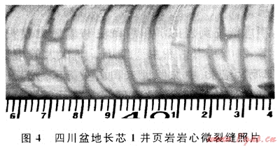 頁巖作為一種特殊的儲集巖,一般呈現(xiàn)低孔、特低滲的物性特征,只有處于斷裂帶或裂縫發(fā)育帶的頁巖儲層的孔隙度、滲透率有部分增加。富有機質(zhì)頁巖天然氣裂縫類型多樣,主要與生烴過程、地層孔隙壓力、各向異性的水平壓力、斷層作用、褶皺作用等密切相關,裂縫發(fā)育程度對頁巖氣藏有效開發(fā)至關重要。頁巖產(chǎn)生裂縫的能力,主要取決于頁巖類型和礦物學特征。當頁巖含有較少的膨脹性黏土礦物,較多的硅質(zhì)等礦物時(一般30%~80%,如Fort Worth盆地Barnett頁巖為40%~60%),巖石脆性增強,產(chǎn)生裂縫的能力提高,裂縫網(wǎng)絡比較容易產(chǎn)生。據(jù)統(tǒng)計,美國頁巖礦物含量組成中,硅質(zhì)含量平均40%~50%,甚至最高可達80%,正是由于這些高比例的有機硅,導致頁巖表現(xiàn)為易于破碎和產(chǎn)生裂縫,并易于壓裂改造的儲層特征。