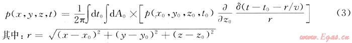 根據(jù)邊界條件,由式(2)推導(dǎo)出克希霍夫積分式: