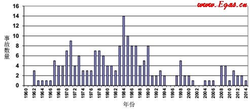 圖12 UKOPA歷年管道失效數(shù)量(1962-2014年)