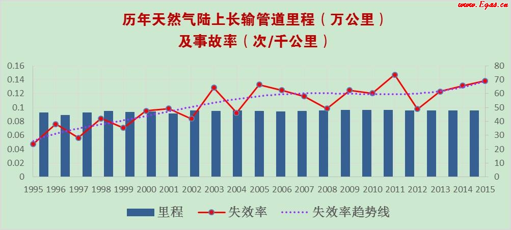 圖2 美國天然氣管道里程及失效率
