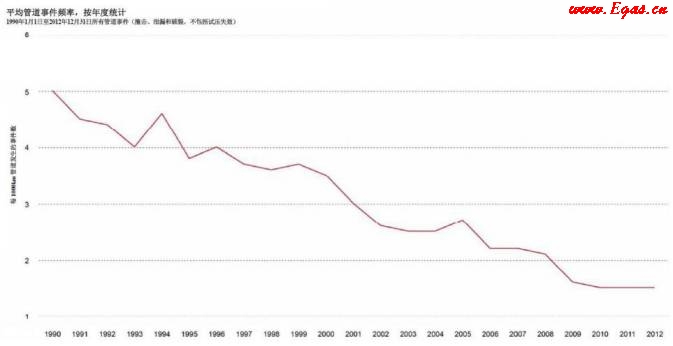 1990年以來,加拿大管道失效頻率逐年下降(圖 11)。