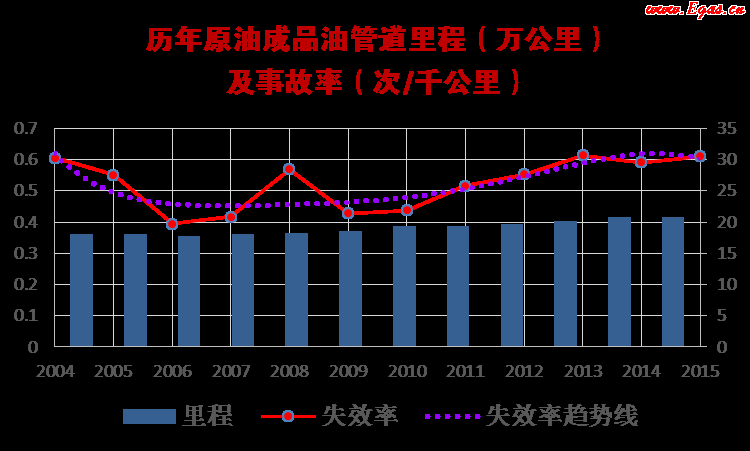 圖1 美國油品管道里程及失效率